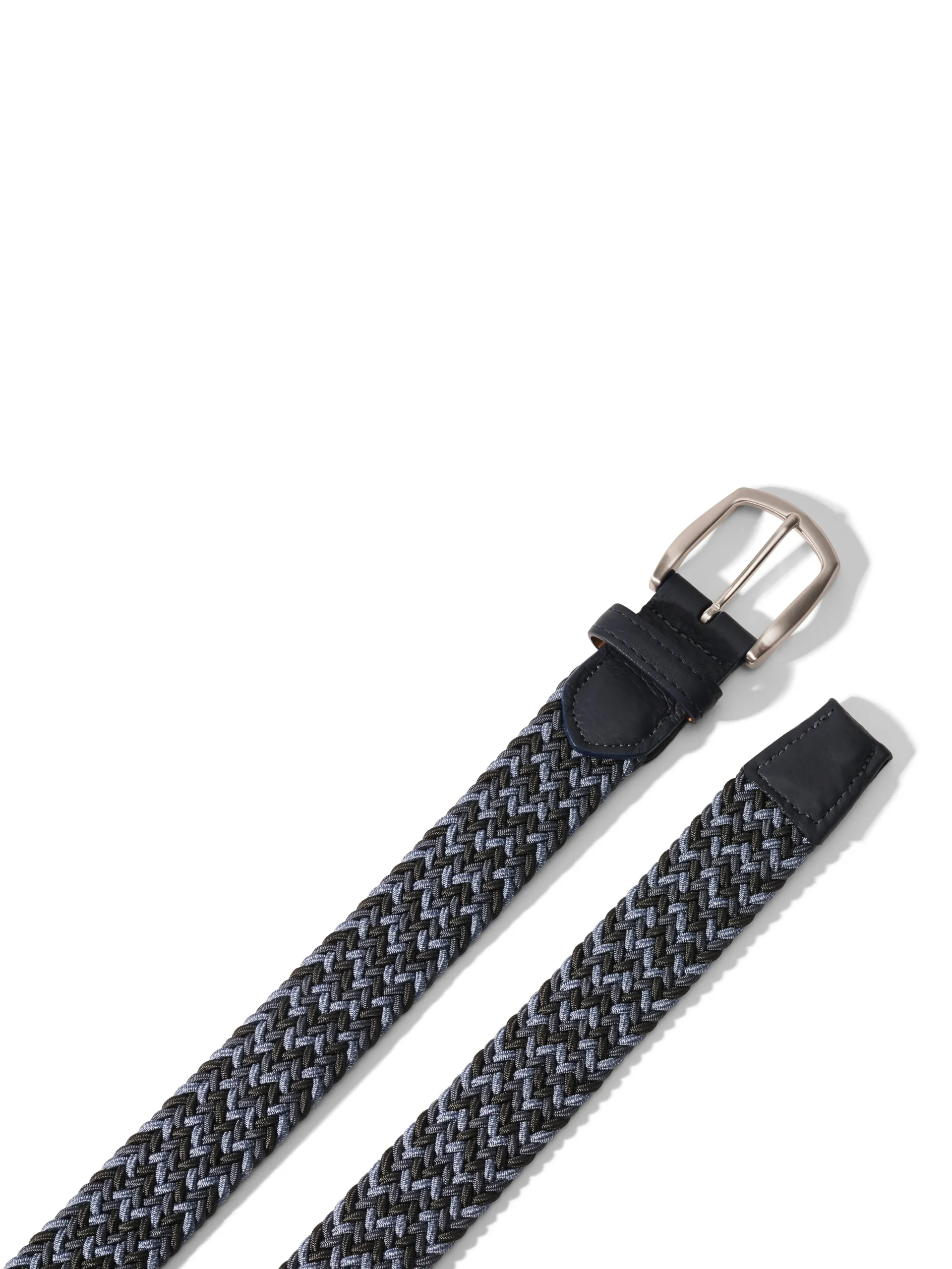 - Detail:Solid Woven Stretch Belt with Pebbled Calf Tabs