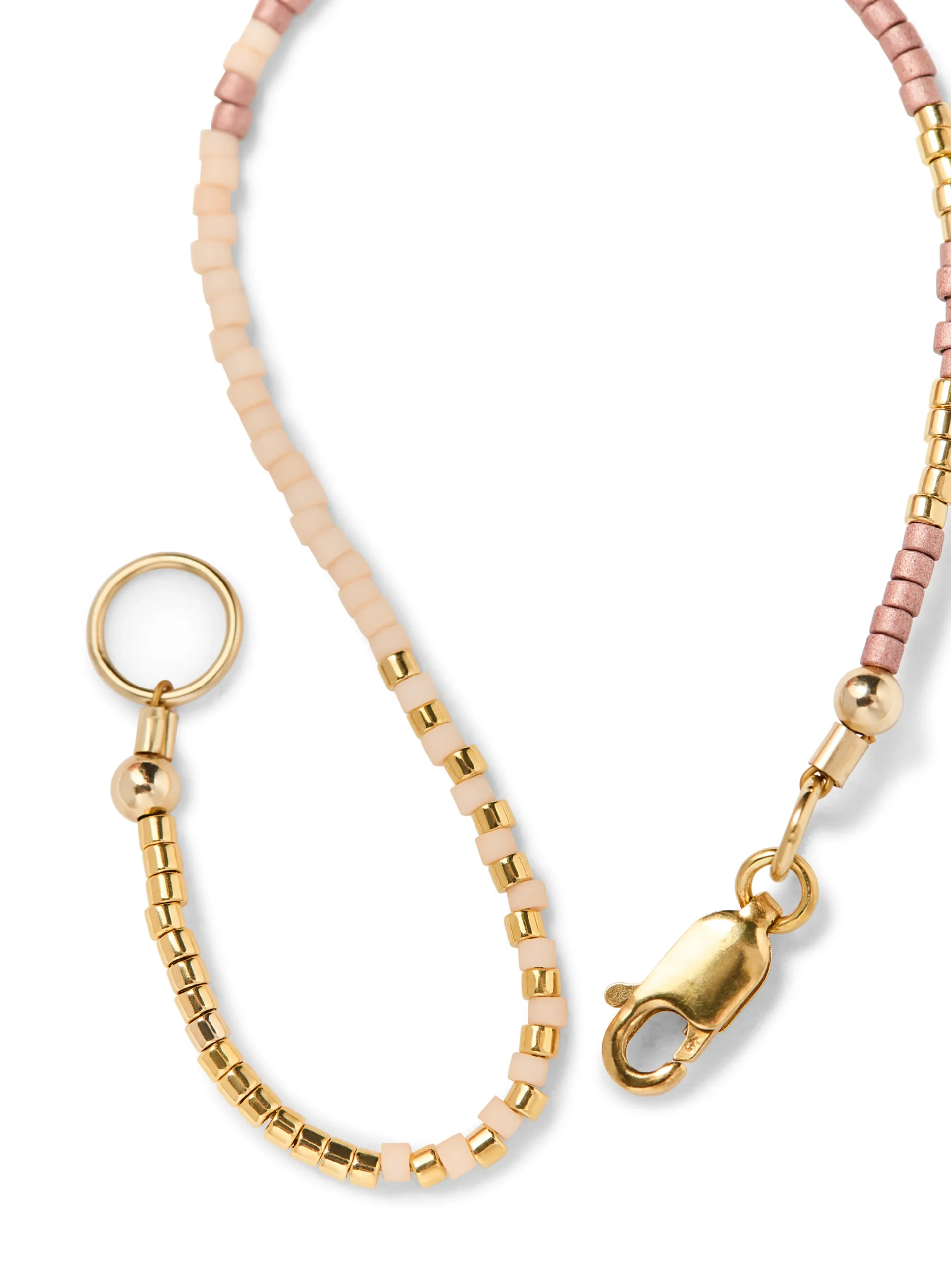 Beyond The Sea Co. handcrafts each piece in their home studio, nestled within the serene ambiance of a New Jersey seaside town. This delicate bracelet made of glass seed beads and gold-filled accents beads is simple yet sophisticated – an effortless choice to compliment any outfit.