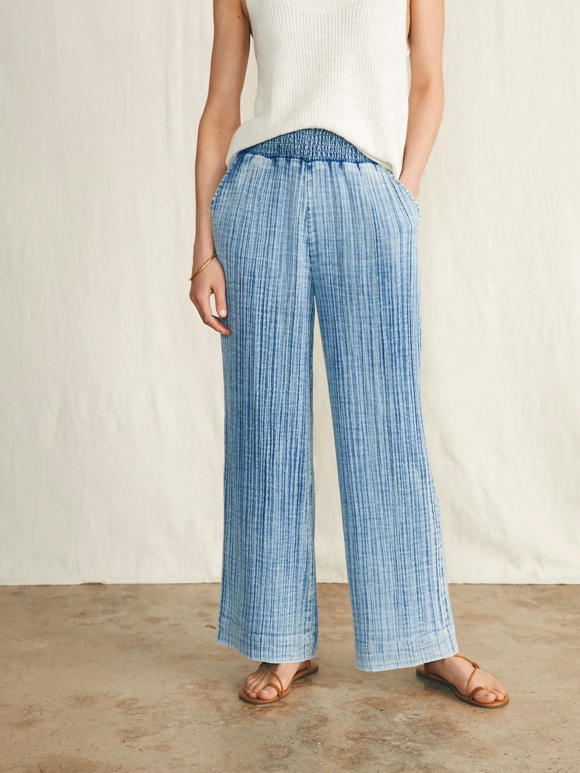 Crafted from our signature Dream Cotton Gauze — a breezy, airy organic double gauze fabric — these wide leg pants epitomize effortless style. Totally comfortable with a pull-on smocked waistband, they’re perfect for lounging yet dress up with ease.