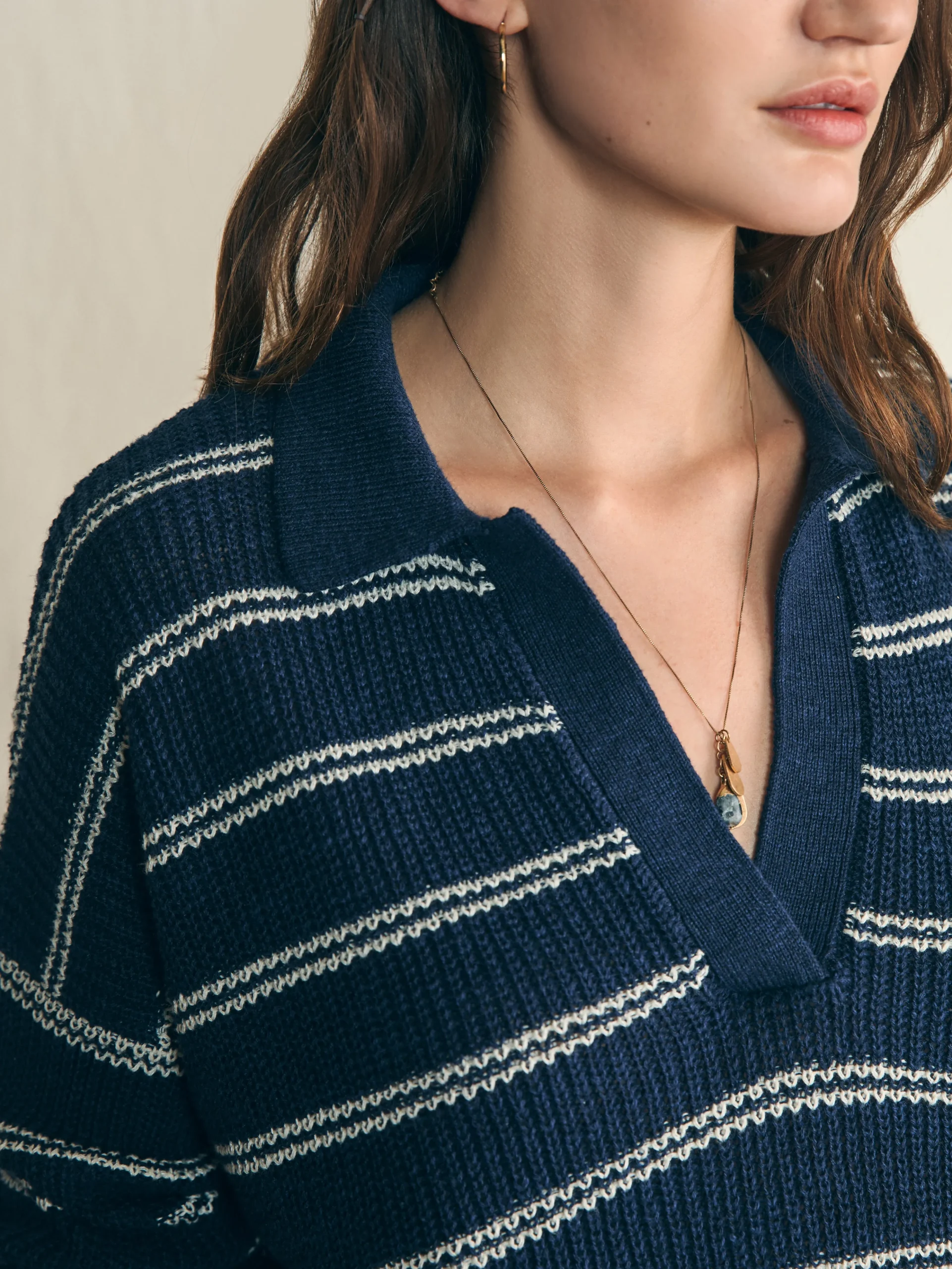 Warm enough for cool spring evenings but still light enough for sunny days, this striped polo is knit in an airy linen cotton blend that makes it the ideal layering piece. The textural, open stitch drapes beautifully with a slouchy, relaxed fit, making it our favorite no-fuss warm weather sweater.