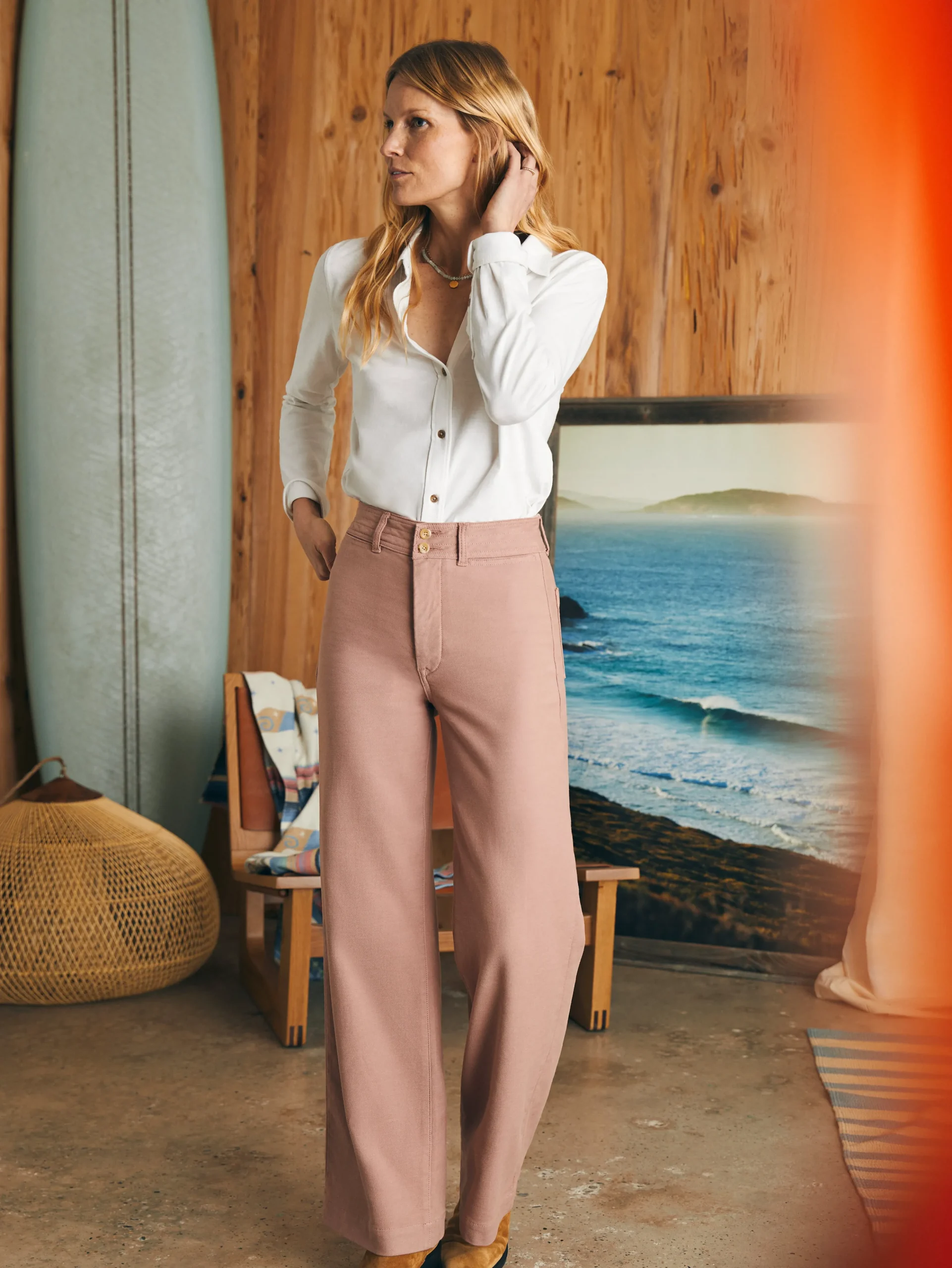 Our new Harbor silhouette features a high rise and wide leg that reads polished and playful – just in time for spring. Crafted from our signature Stretch Terry (looks like denim, feels like sweats), we designed it with hidden front seam pockets to add to the hugged-in feel that’s endlessly comfortable and flattering. Decorative stitching and double buttons on the waistband complete the coastal-inspired look.