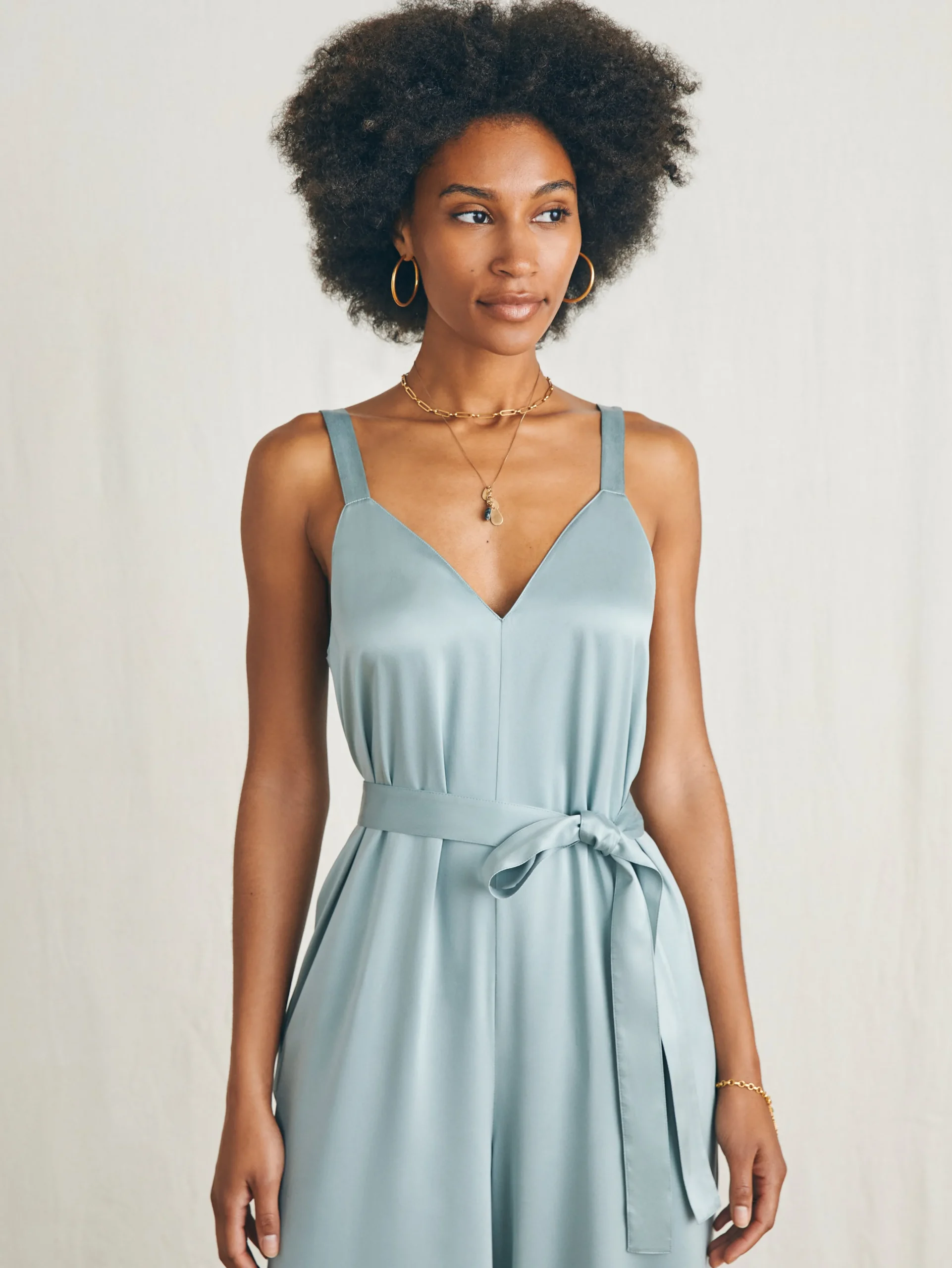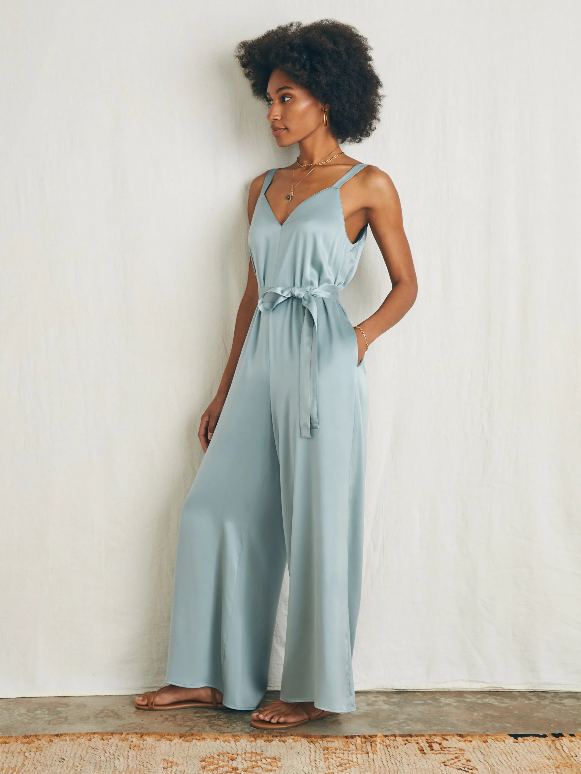 Silk done the Faherty way is all about embracing the softness and inherent luxury of this ancient fiber and cutting it in silhouettes that have an easygoing, lived-in charm that work for the everyday. See our graceful and flowy jumpsuit finished in a tumbled, matte finish silk; an elevated and timeless choice that works from day to night.