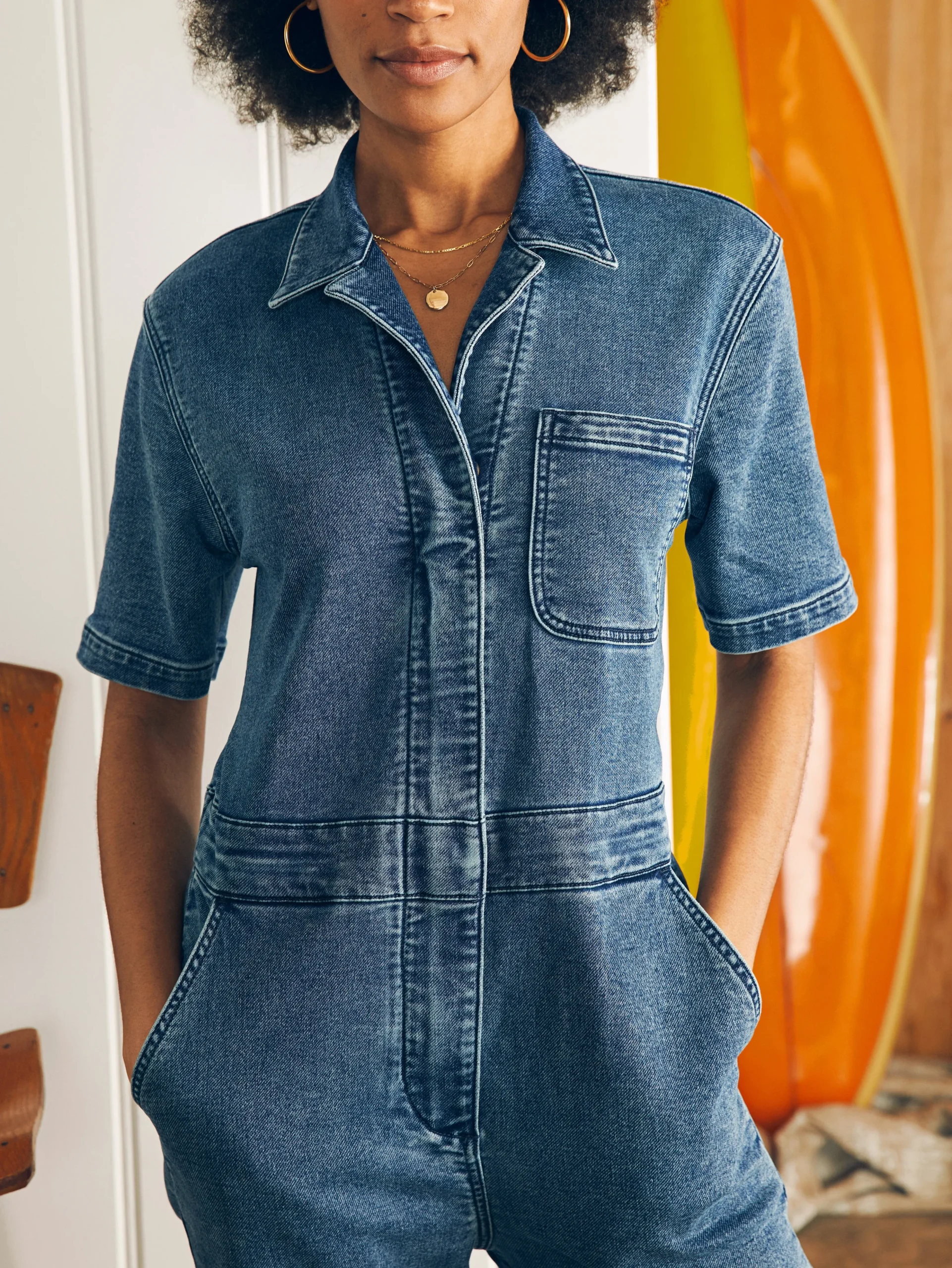 We love the simplicity of a one-piece for easy, year-round dressing. The Blythe has it all: a relaxed fit inspired by its utilitarian roots and the perfect, sunwashed colors for effortless, warmer weather vibes. How we’d wear it: unzipped over a tank and rolled at the cuff to showcase your favorite pair of slides or sneakers.