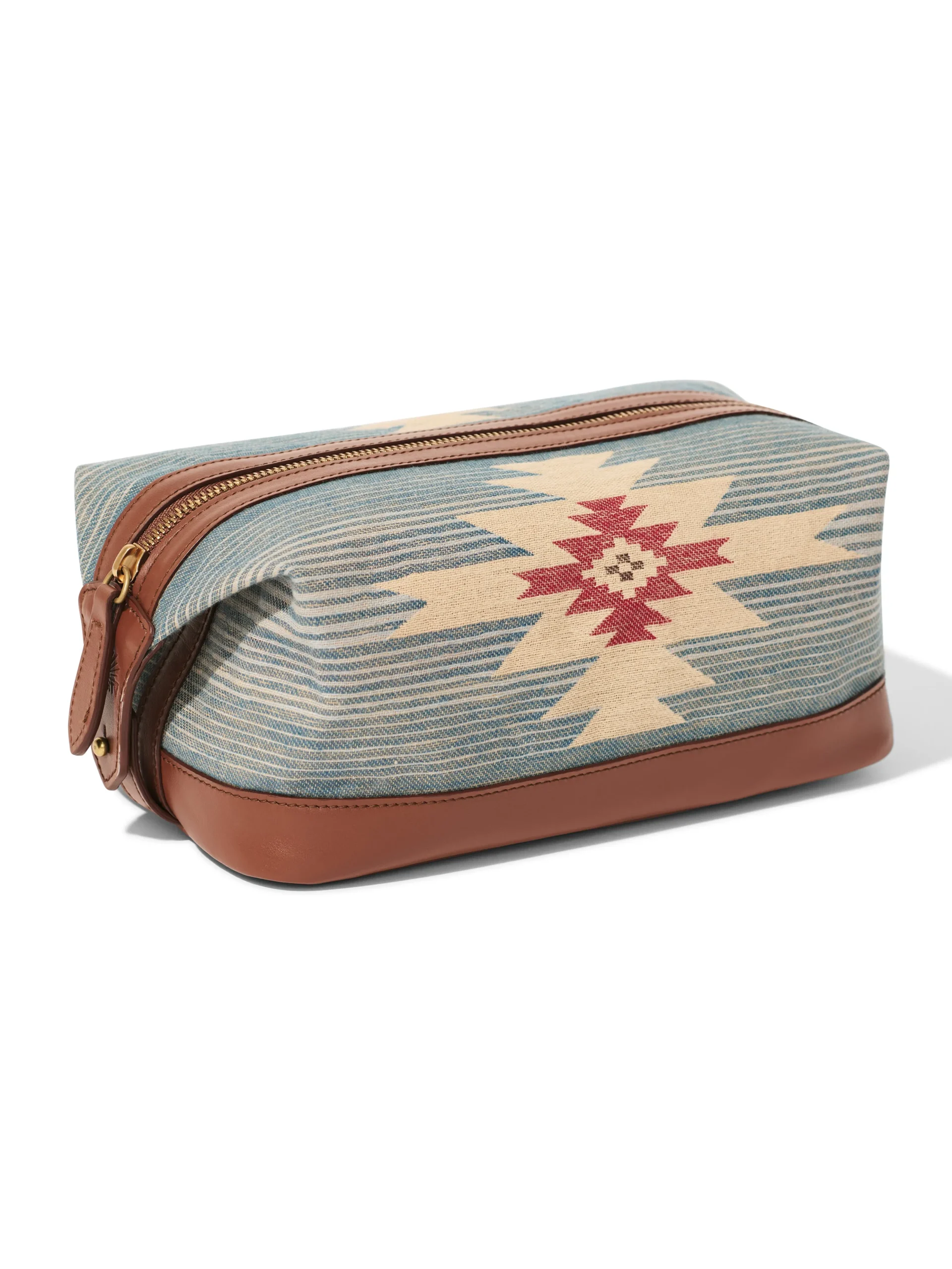 - Detail: Super special, only 100 pieces produced, this dopp kit uses our blanket fabric with a pattern designed by Native artist Doug Good Feather, and premium leather. Sturdy and handsome, it’s the perfect package for travel.