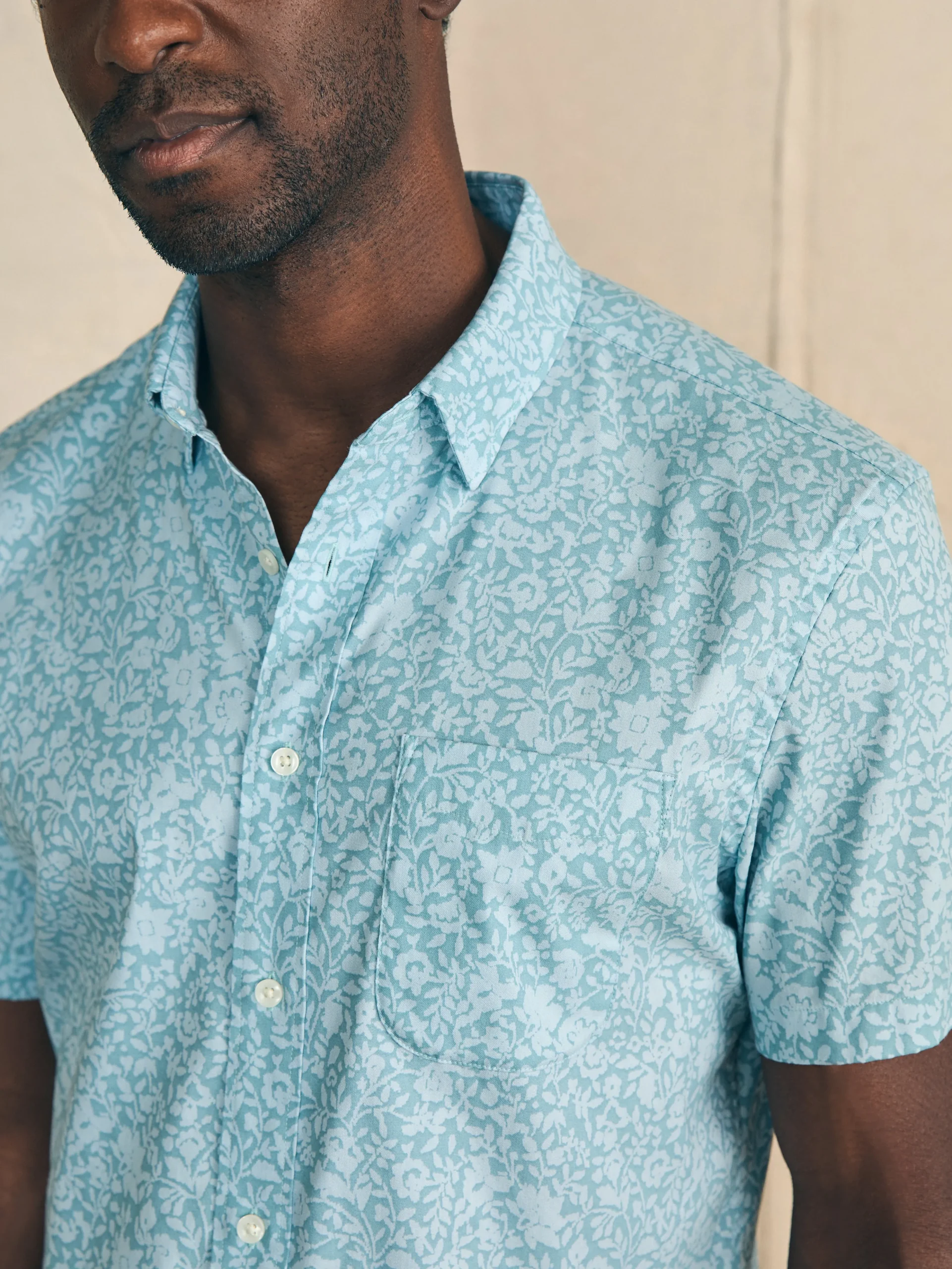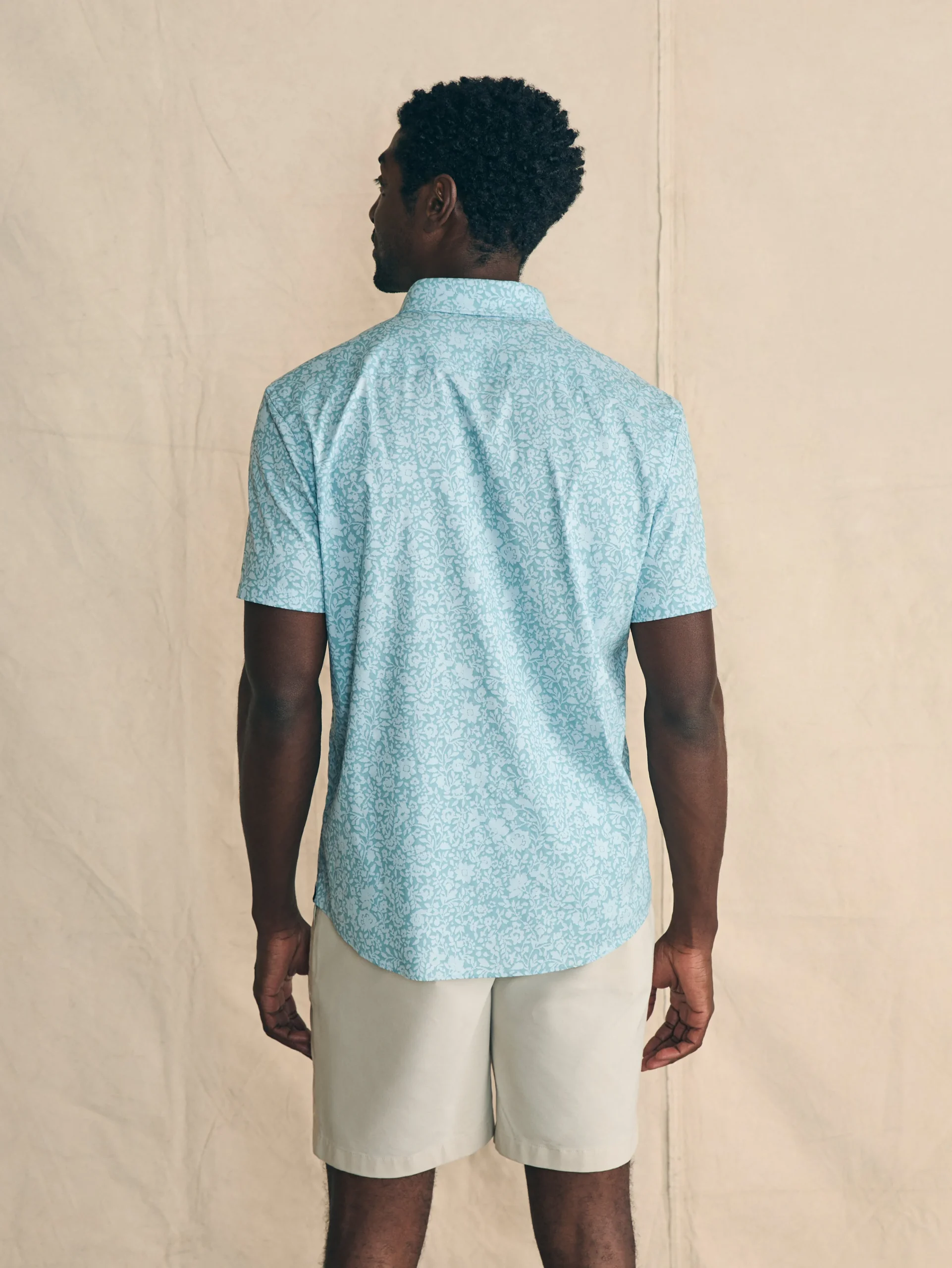 - Detail: Spread collar with concealed buttons to prevent fly-away. Button front placket. Short sleeves. Bungee locker loop. Shirttail hem.