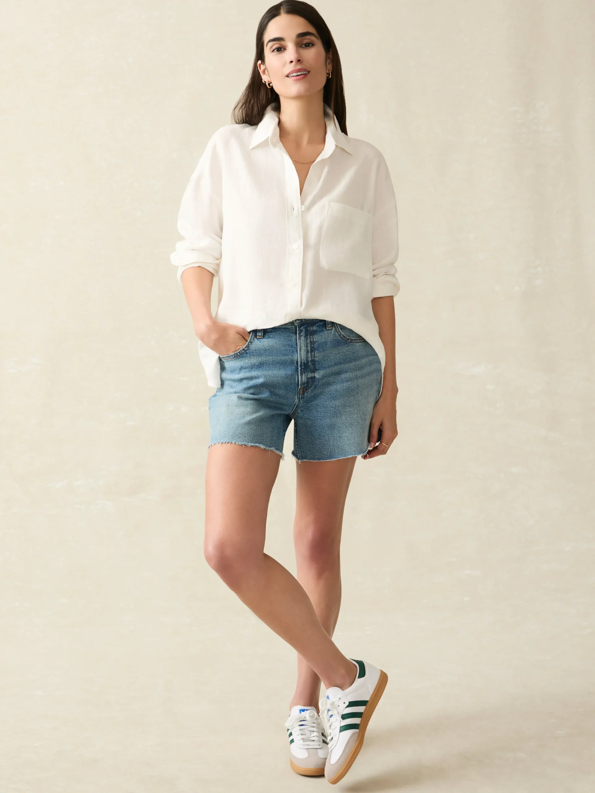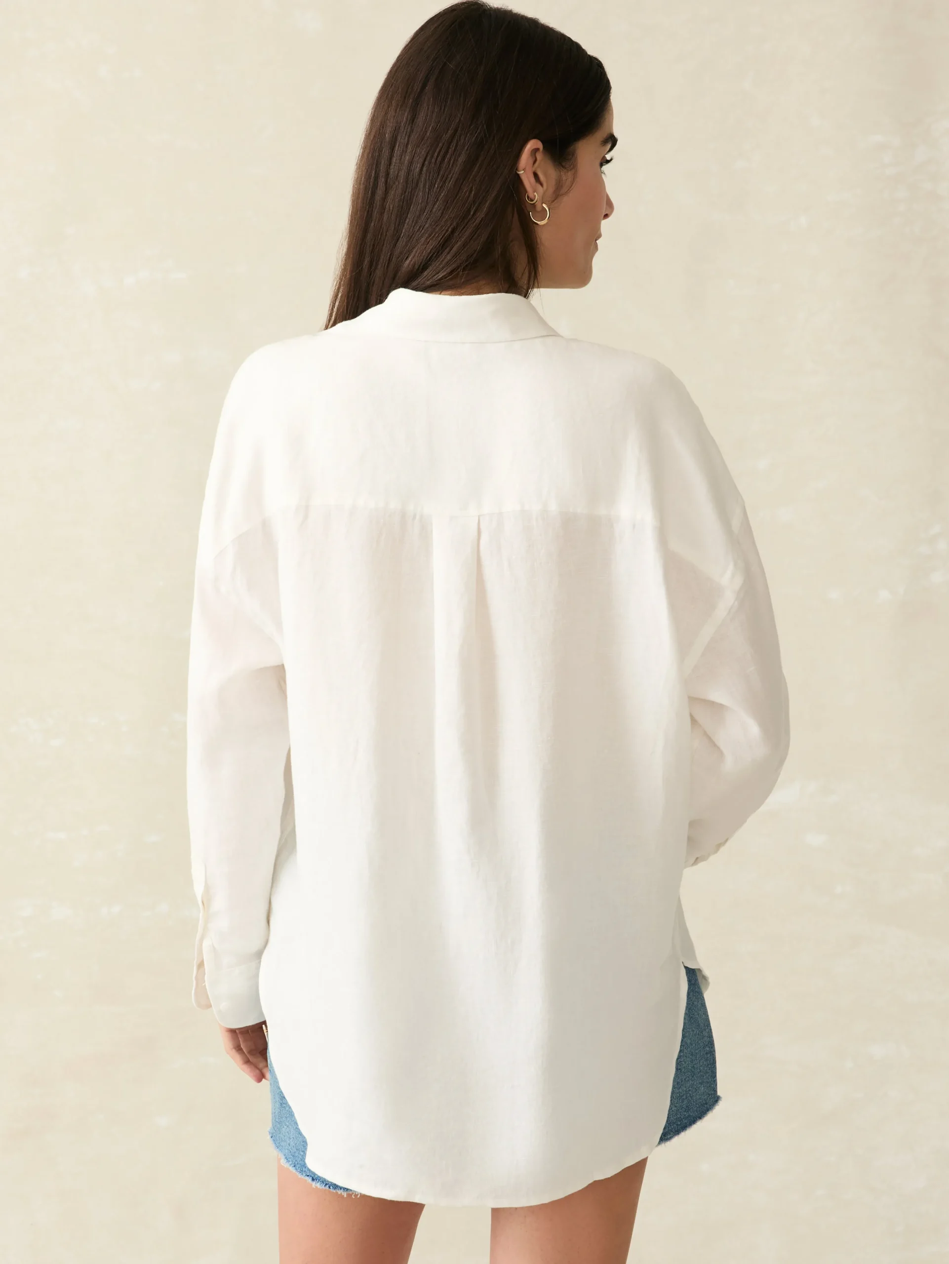 Naturally cooling, lightweight, and washed for incredible softness, this premium linen button up is an iconic summer staple. The loose, relaxed cut is ideal for versatile styling options – tie in a knot or wear open with a tank for that carefree summer mood.