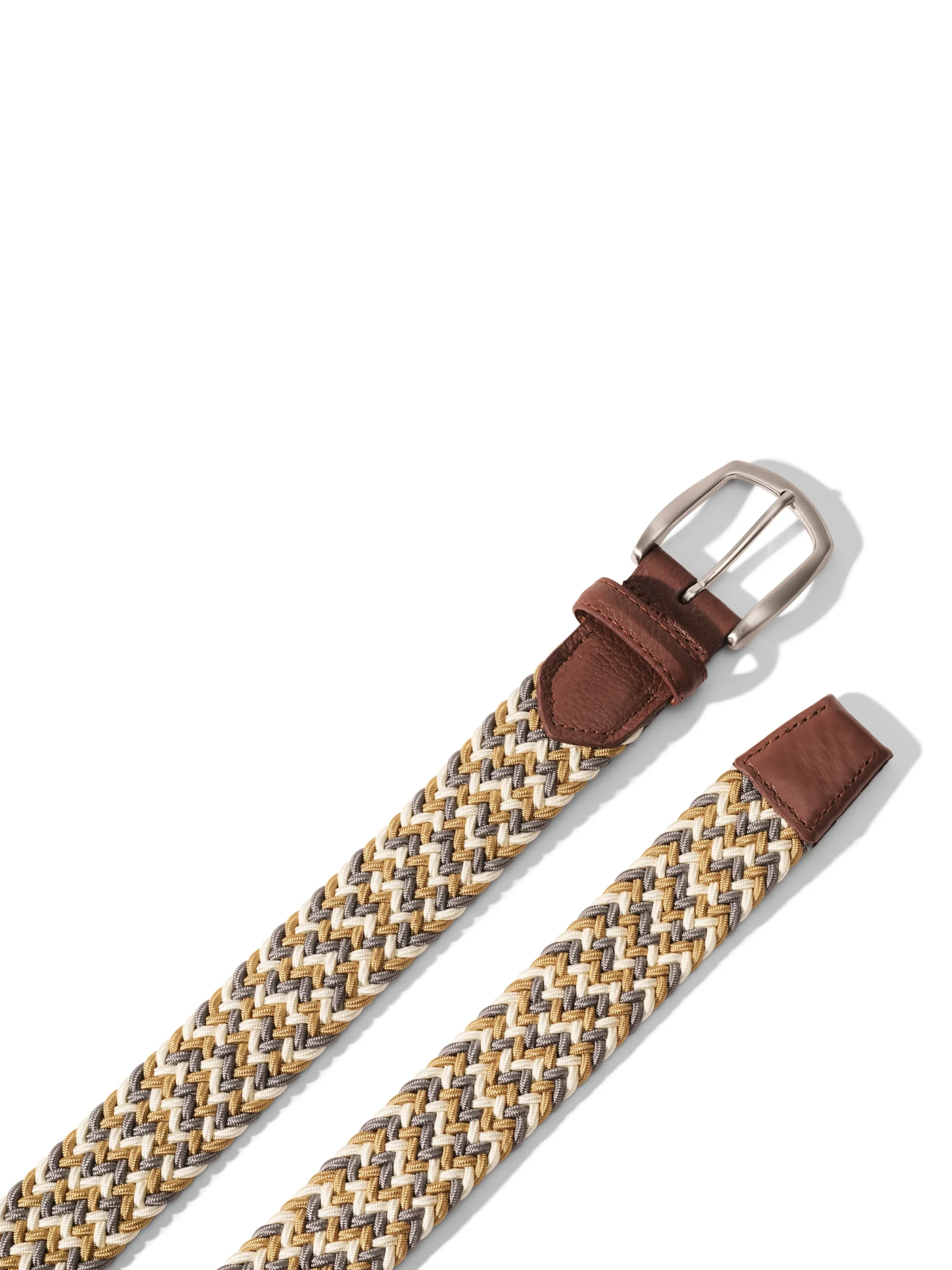 - Detail:Solid Woven Stretch Belt with Pebbled Calf Tabs